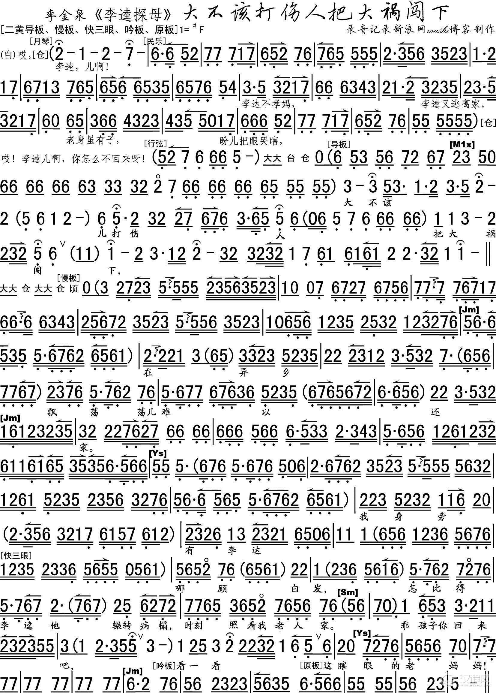 戏曲曲谱[秦腔] 朱春登跪席棚泪如泉涌(《朱春登祭母》选段)