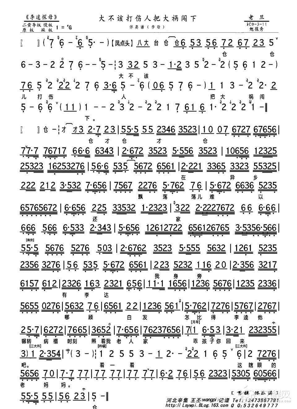 戏曲曲谱苏三起解(线简谱混排版)