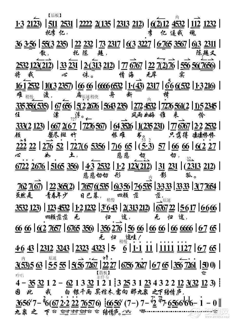 戏曲曲谱泉水潺潺山花秀(曹雪芹》选段、琴谱)