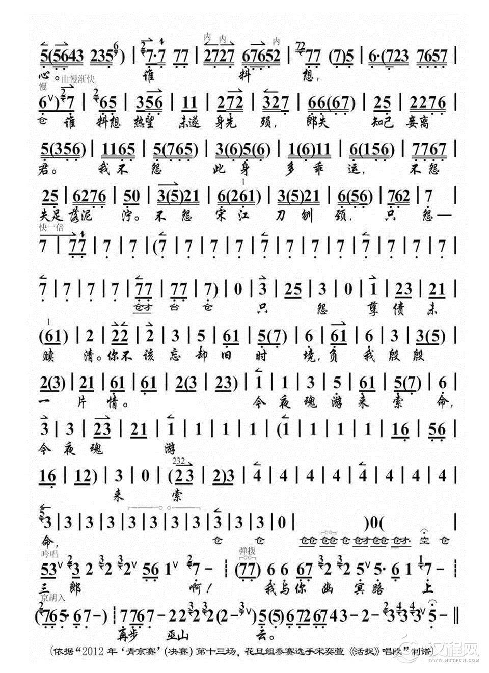 戏曲曲谱叫我进也不是退也难(《山村一夜》冬雪唱段、琴谱)