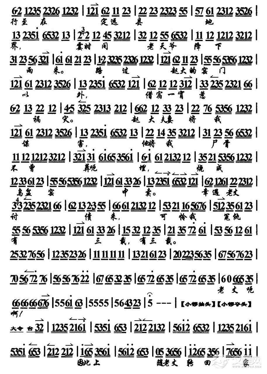 戏曲曲谱苏三起解(线简谱混排版)