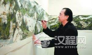 创作这幅作品的便是山建宁,一个与山水画打了大半生交道的人。一年前,他接到由北京市文联主办的“中国名家画北京”的创作任务,作品主题几乎就是为他这个土生土长的通州汉子量身订制的——以长卷形式绘制“运河新貌”。原来,身为通州区美协常务副主席的他,早年间就盘算组织一批本地画家,为区内运河段绘制全貌,只是一直搁浅,此番创作任务恰巧提供了实现梦想的契机。他说,由于作品很快就要上交到市里参评,今后可能也不会回来了,这些天,成百上千当地居民如同约好似的赶到这场“告别”展出现场,一睹家乡风采神韵。
