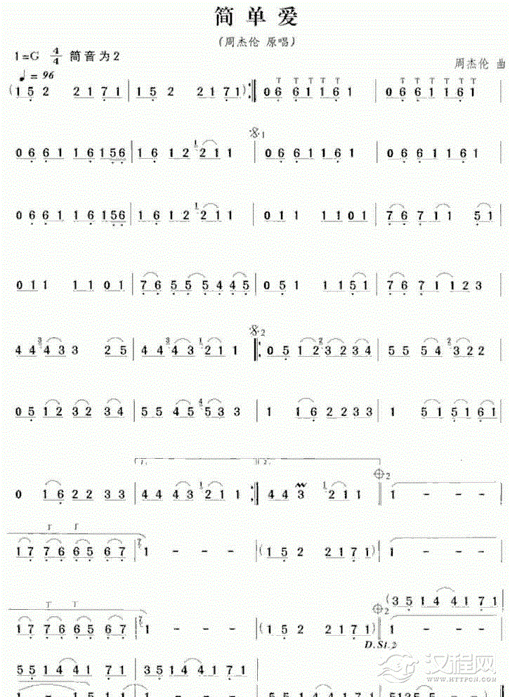 笛子谱:简单爱-周杰伦