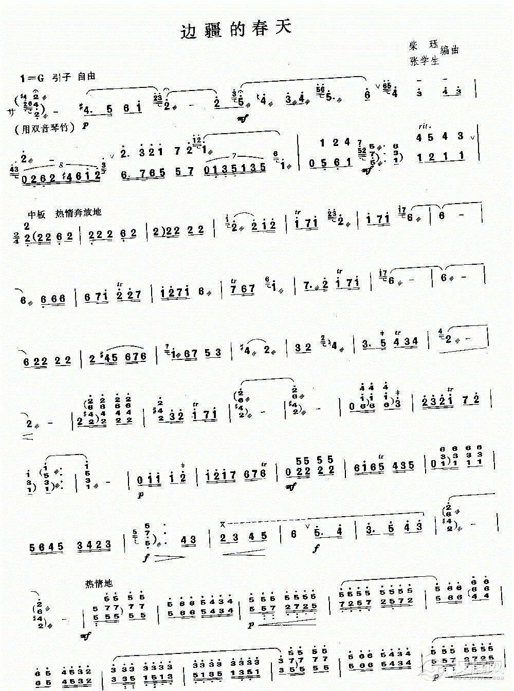 扬琴曲谱:边疆的春天