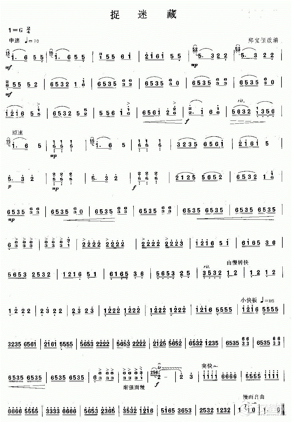 扬琴曲谱:捉迷藏