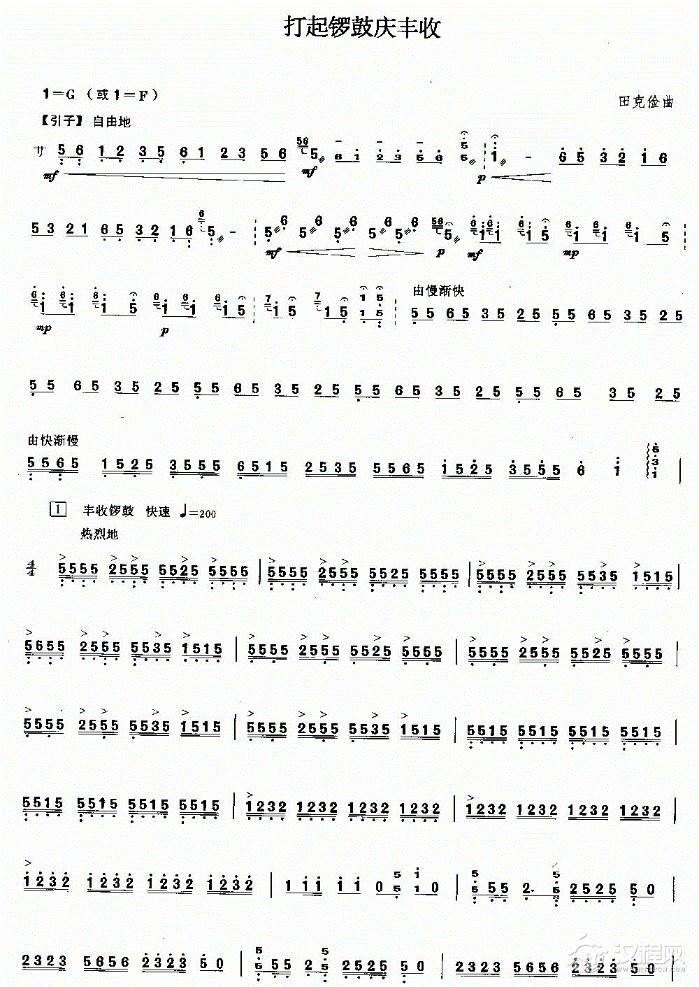 扬琴曲谱:打起锣鼓庆丰收