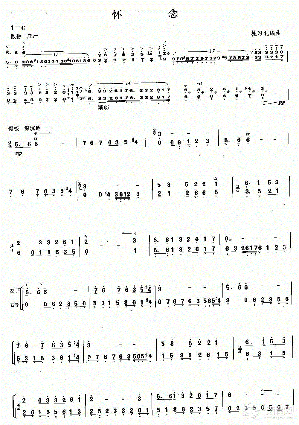 扬琴曲谱:怀念