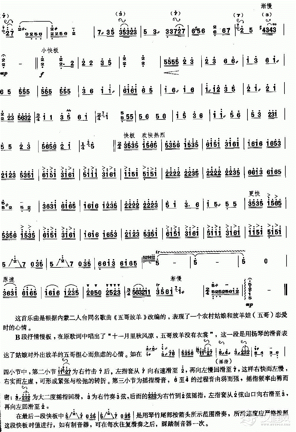 扬琴曲谱:五哥放羊