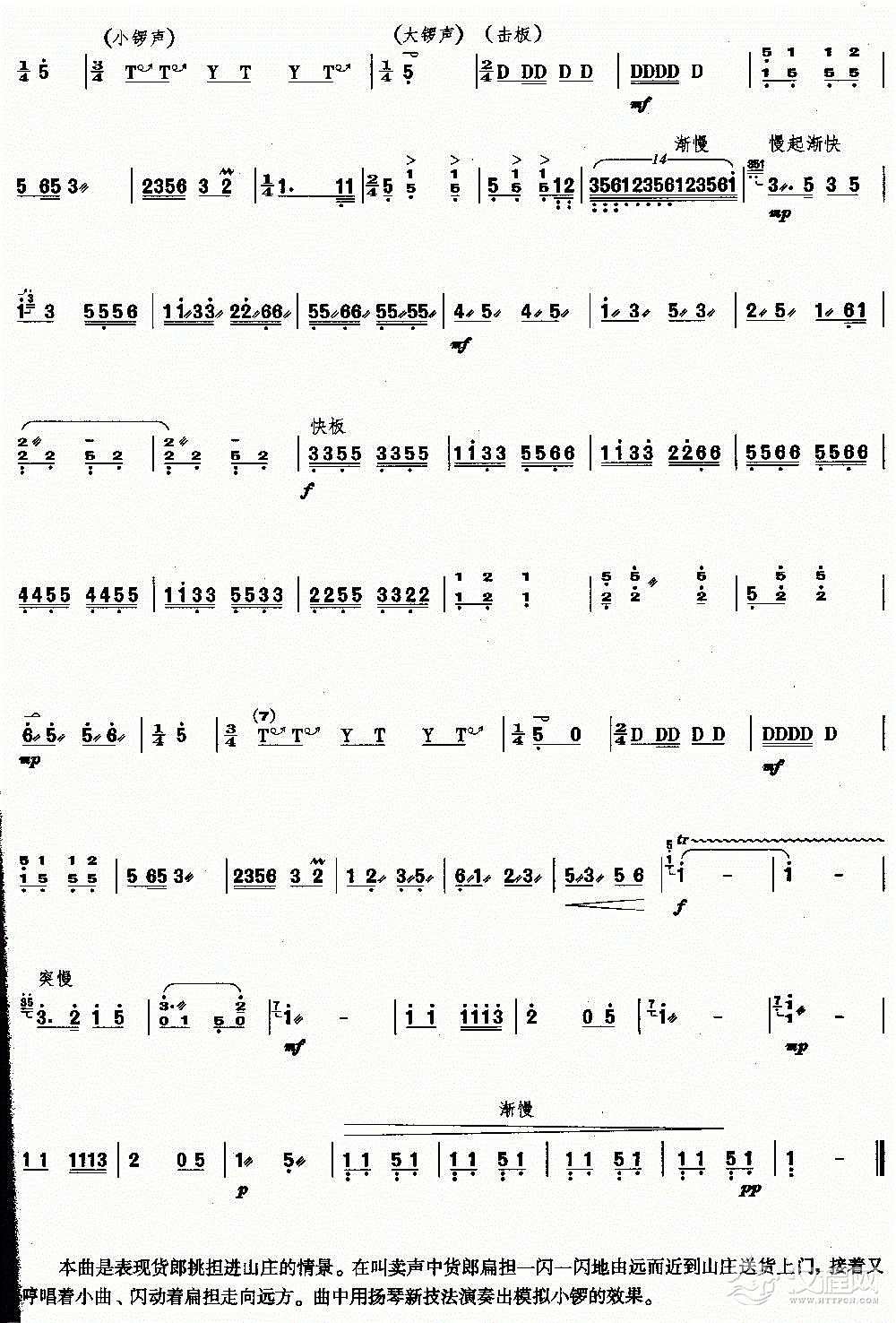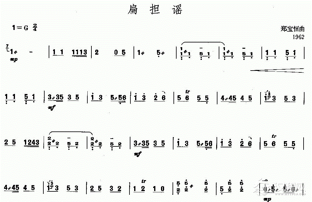 扬琴曲谱:扁担谣