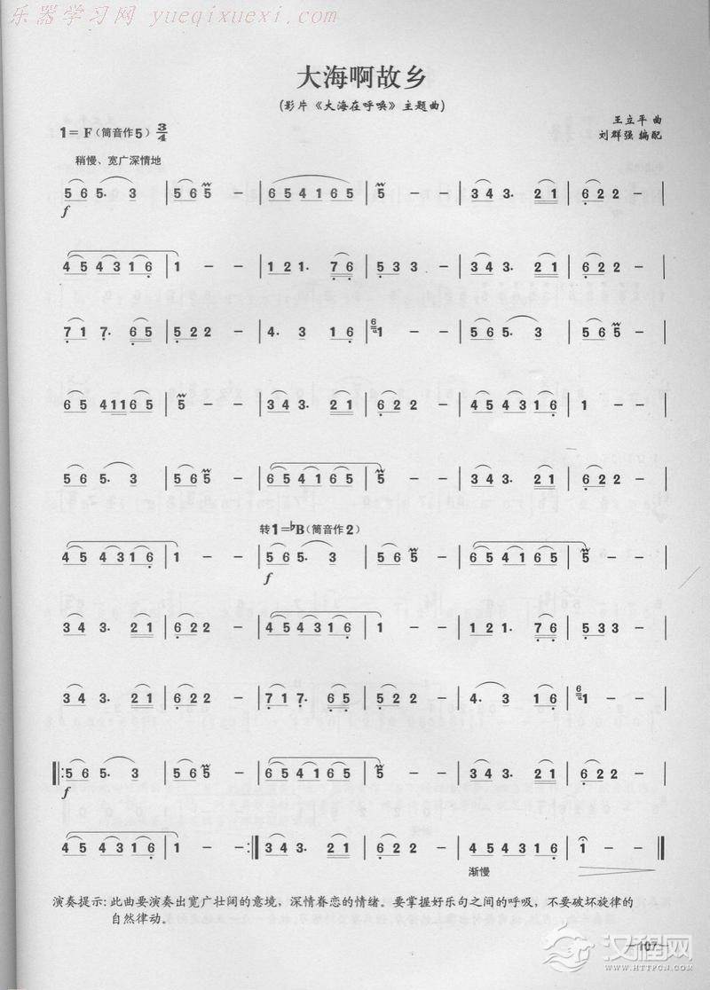 曲谱大全笛子演奏通俗歌曲谱之:大海