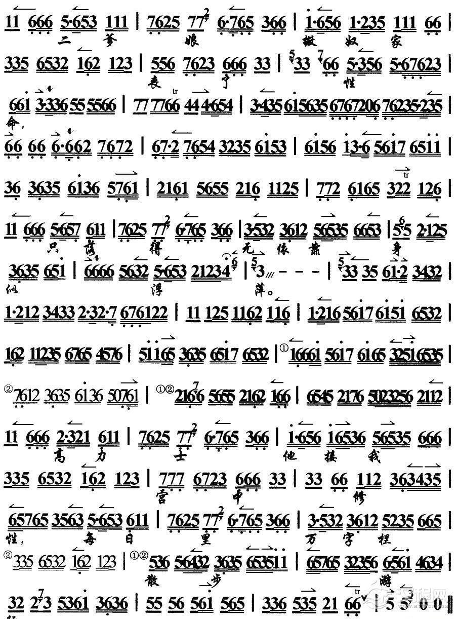 戏曲曲谱叹兄弟遭不幸一旦丧命(《桑园寄子》选段、琴谱)
