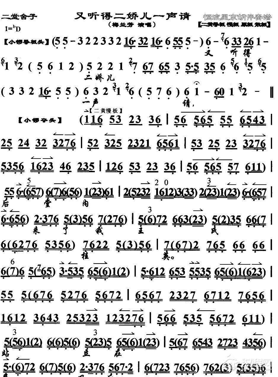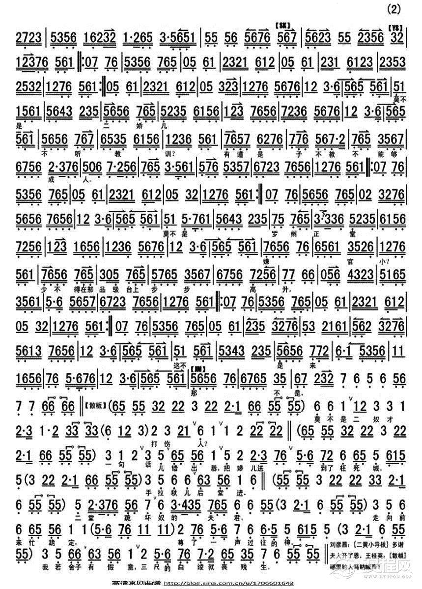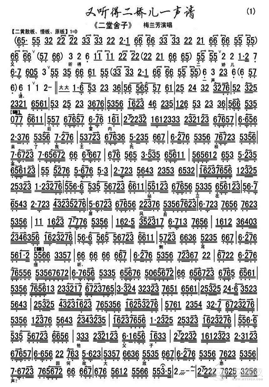 戏曲曲谱唱支山歌给党听(京歌)