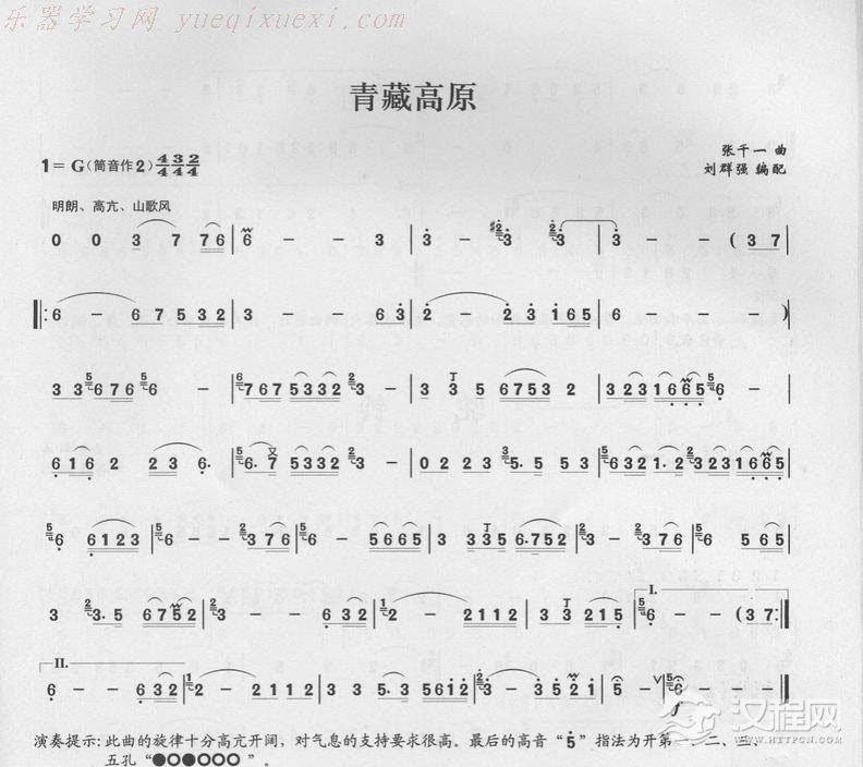 曲谱大全笛子演奏通俗歌曲谱之:天路