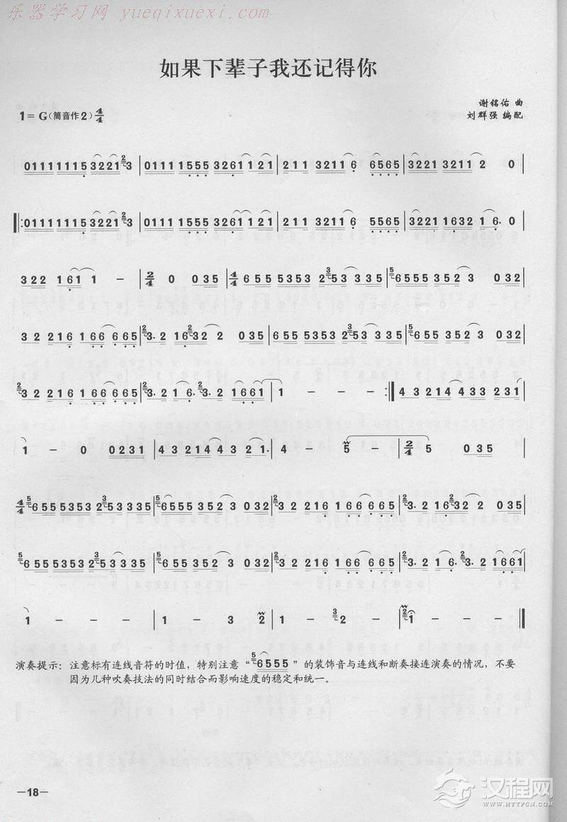 曲谱大全笛子演奏通俗歌曲谱之:如果云知道