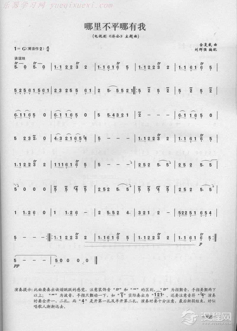 曲谱大全笛子演奏通俗歌曲谱之:棋子