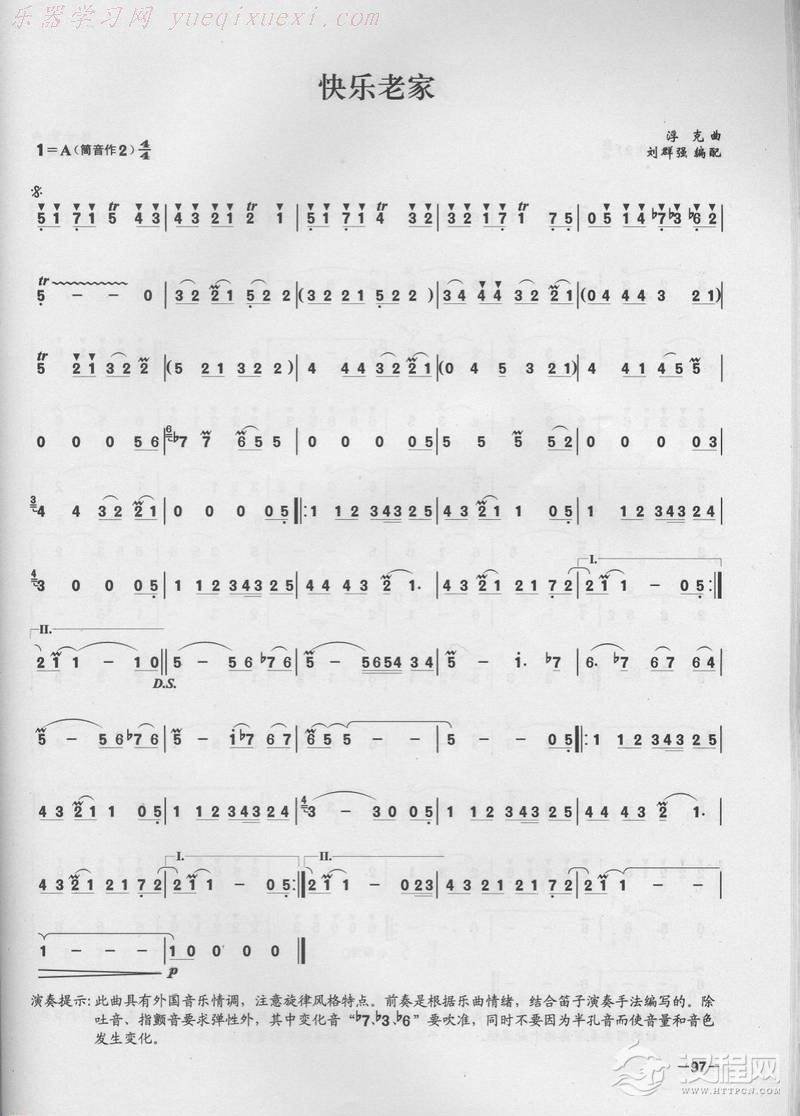 曲谱大全笛子演奏通俗歌曲谱之:回娘家