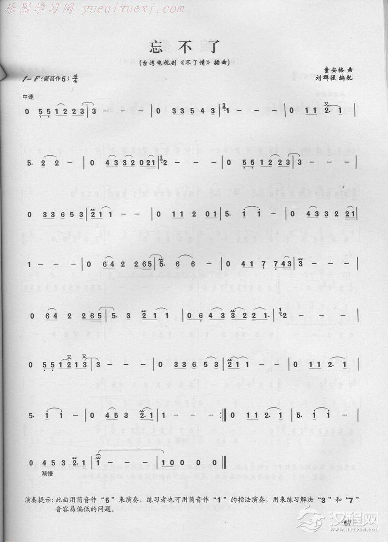 曲谱大全笛子演奏通俗歌曲谱之:未了情