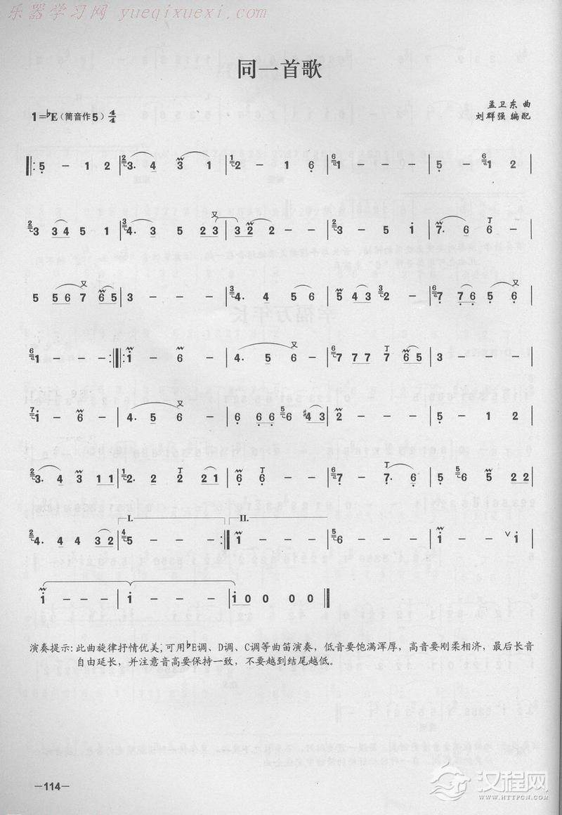曲谱大全笛子演奏通俗歌曲谱之:请跟我来