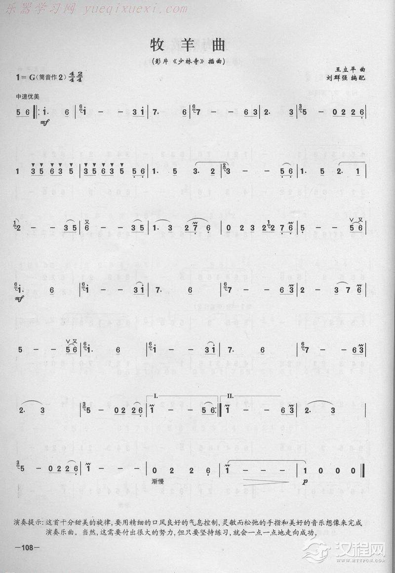 曲谱大全笛子演奏通俗歌曲谱之:牧丹之歌
