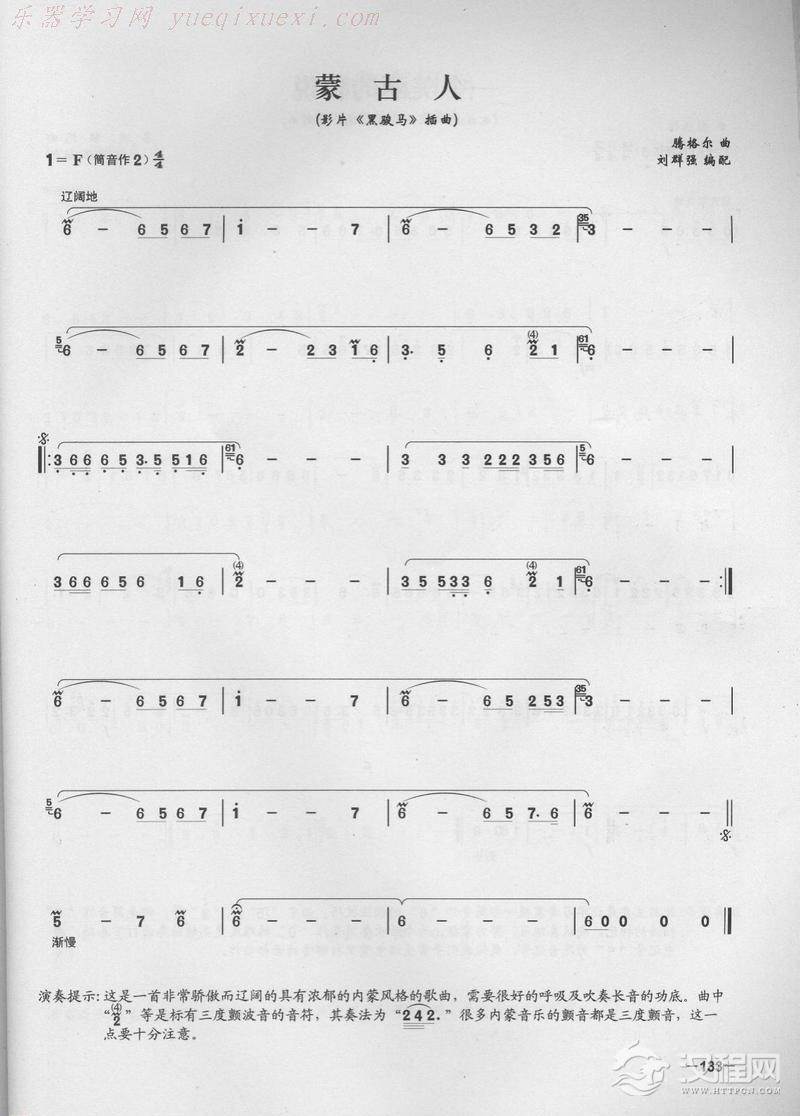 曲谱大全笛子演奏通俗歌曲谱之:宁夏