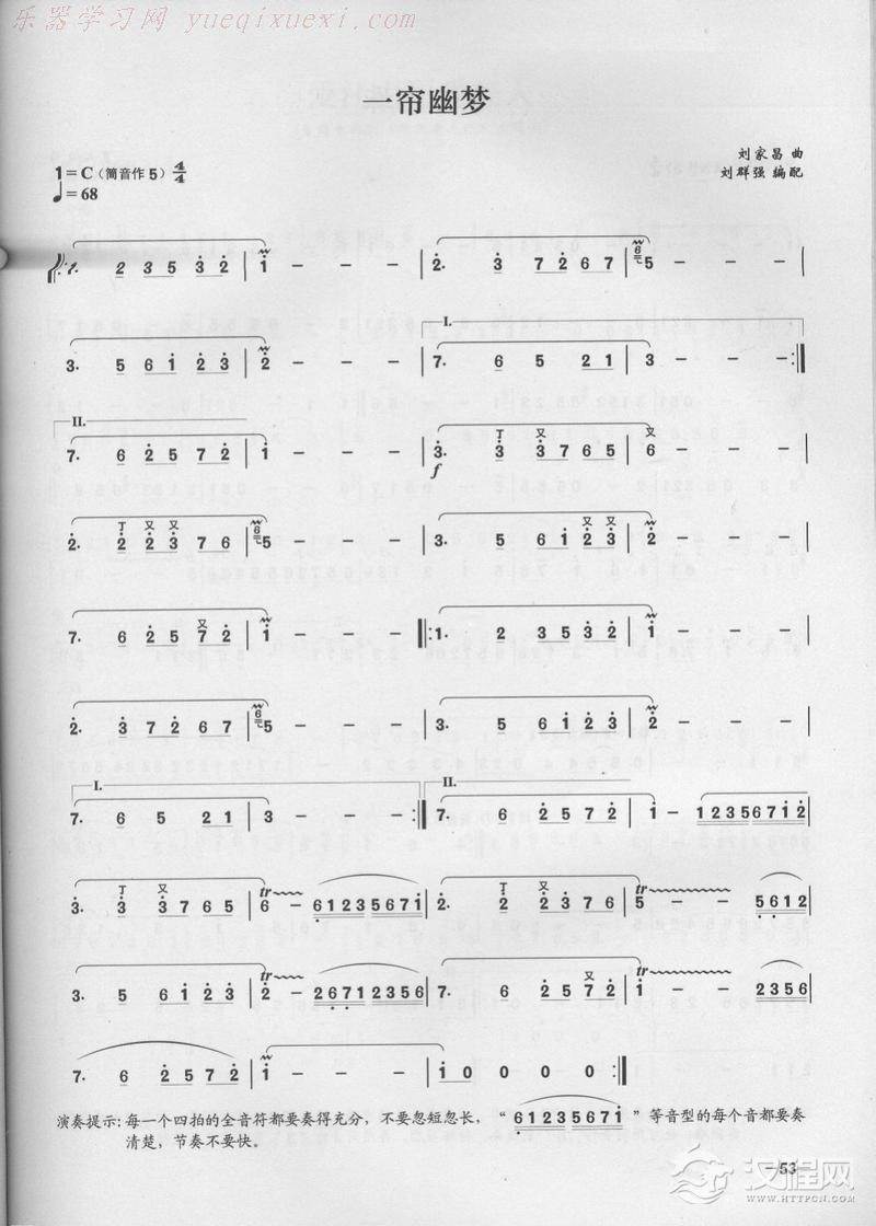 曲谱大全笛子演奏通俗歌曲谱之:月芽五更