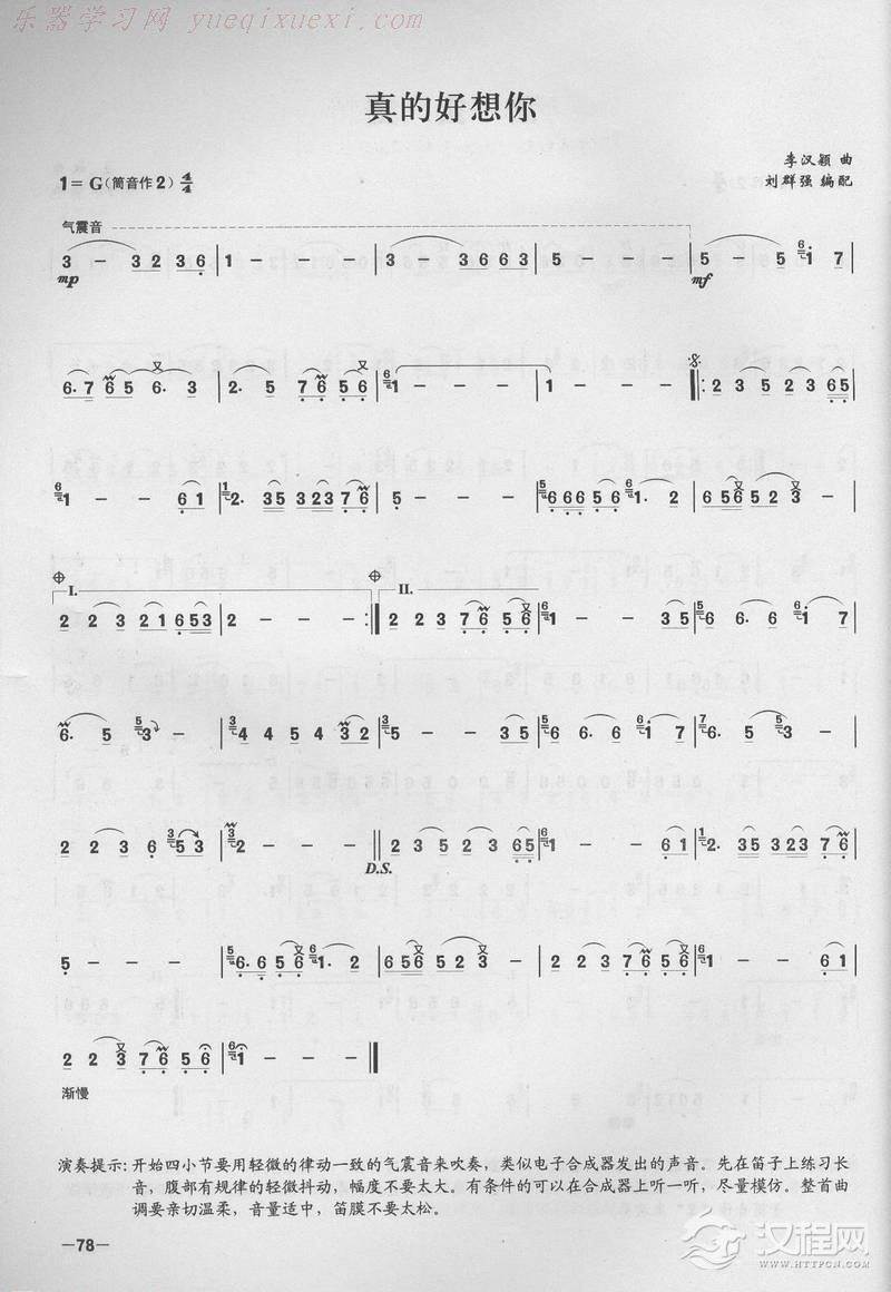 曲谱大全笛子演奏通俗歌曲谱之:星语心愿