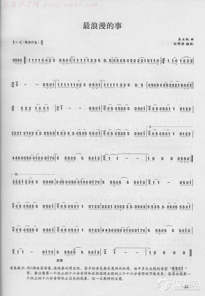 曲谱大全流行竹笛歌谱之:My heart will go on