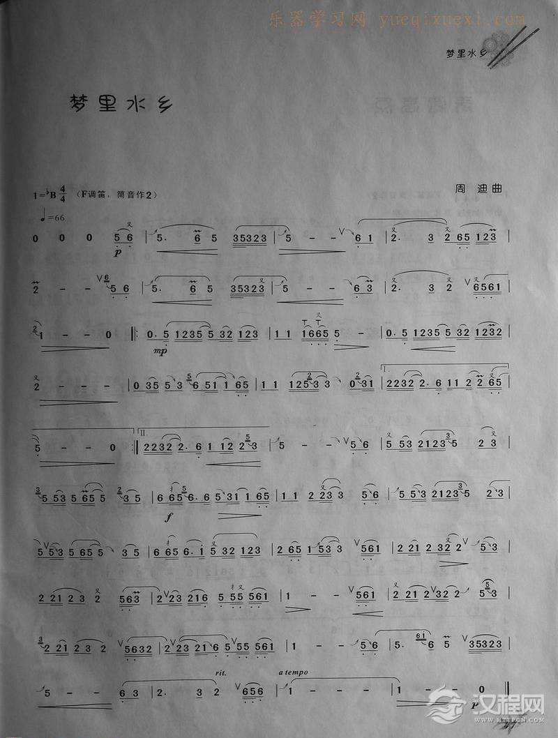 曲谱大全流行竹笛歌谱之:小城故事