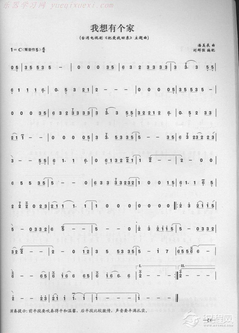 曲谱大全笛子演奏通俗歌曲谱之:我愿意