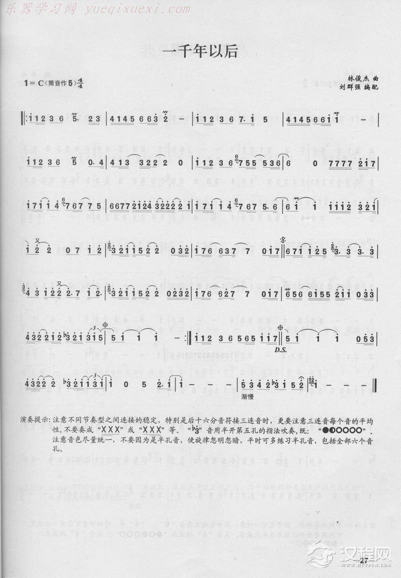 曲谱大全笛子演奏通俗歌曲谱之:在那遥远的地方