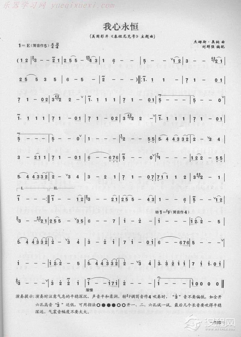 曲谱大全笛子演奏通俗歌曲谱之:我愿意