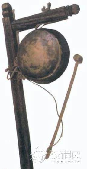 铛铛,又名铛子。由小锣和木架组成。小锣平坦无脐,锣面直径15厘米、木架长47厘米,在长立柱上置一横木,旋制而成。小锣用绳悬系于木架上。演奏时,左手执木架立柱下端,右手执小棰敲击,有的棰头用玉石制作。发音清脆。用于河北地区的吹歌会和佛教音乐中。