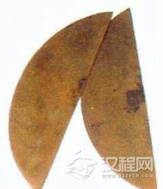 梨花片是半圆形的薄铜片,长16、中间宽4、厚0.4厘米,两片为一副,重0.25公斤。