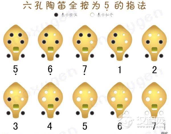 乐器学习六孔陶笛G调指法
