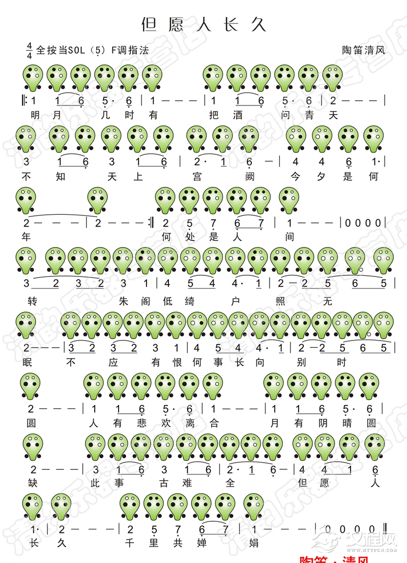曲谱大全6孔陶笛曲谱:彩云追月