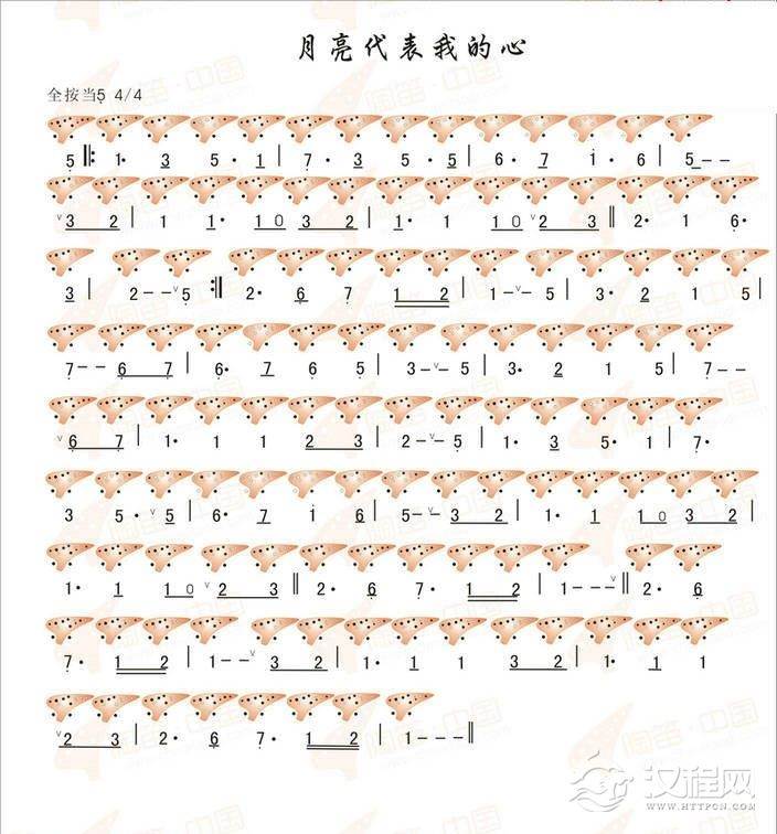 曲谱大全12孔陶笛曲谱:月满西楼