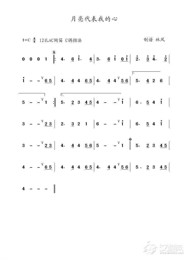 曲谱大全12孔陶笛曲谱:月亮代表我的心
