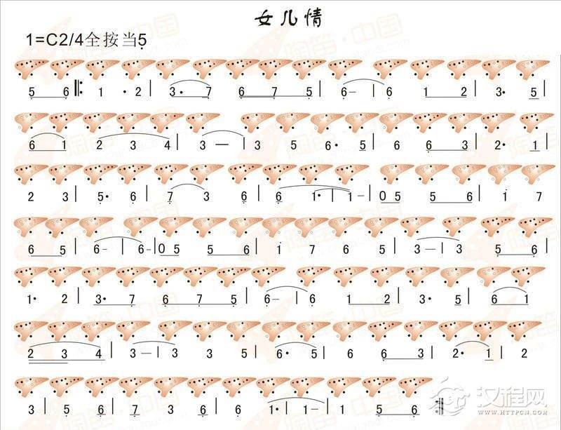 曲谱大全12孔陶笛曲谱:女人花