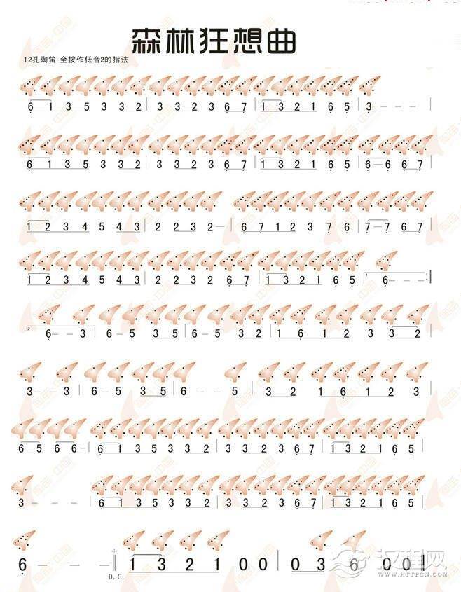 曲谱大全12孔陶笛曲谱:甩葱歌