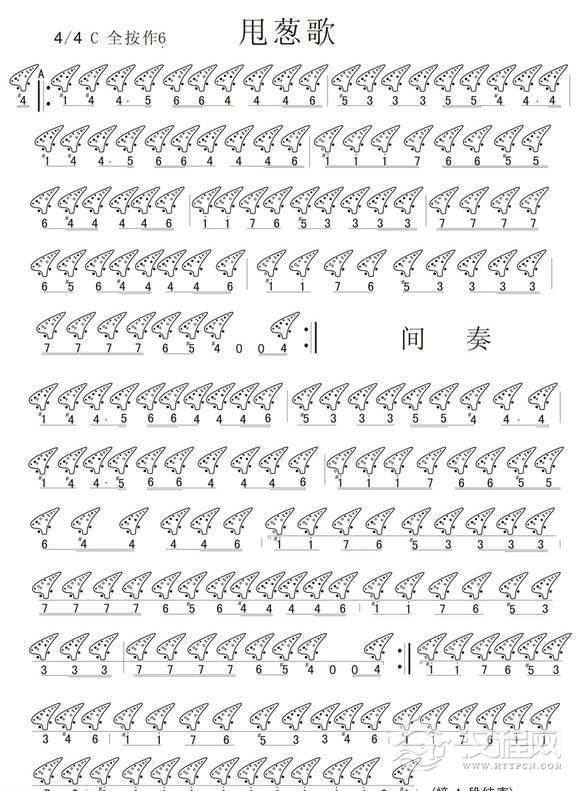 曲谱大全12孔陶笛曲谱:我只在乎你