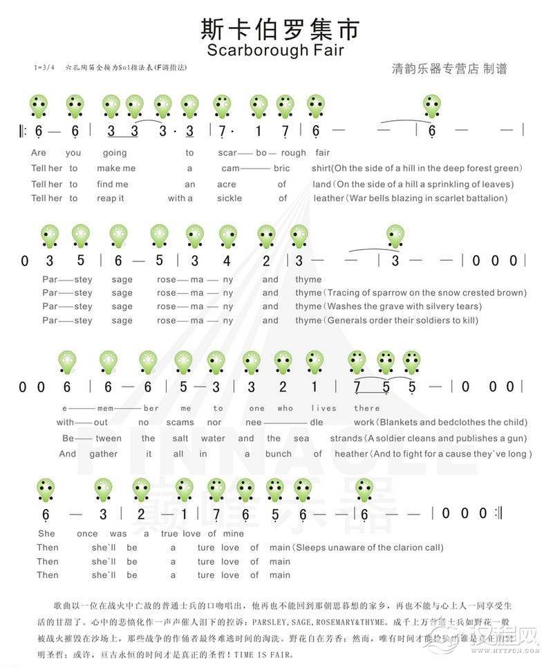 曲谱大全6孔陶笛曲谱:天仙子