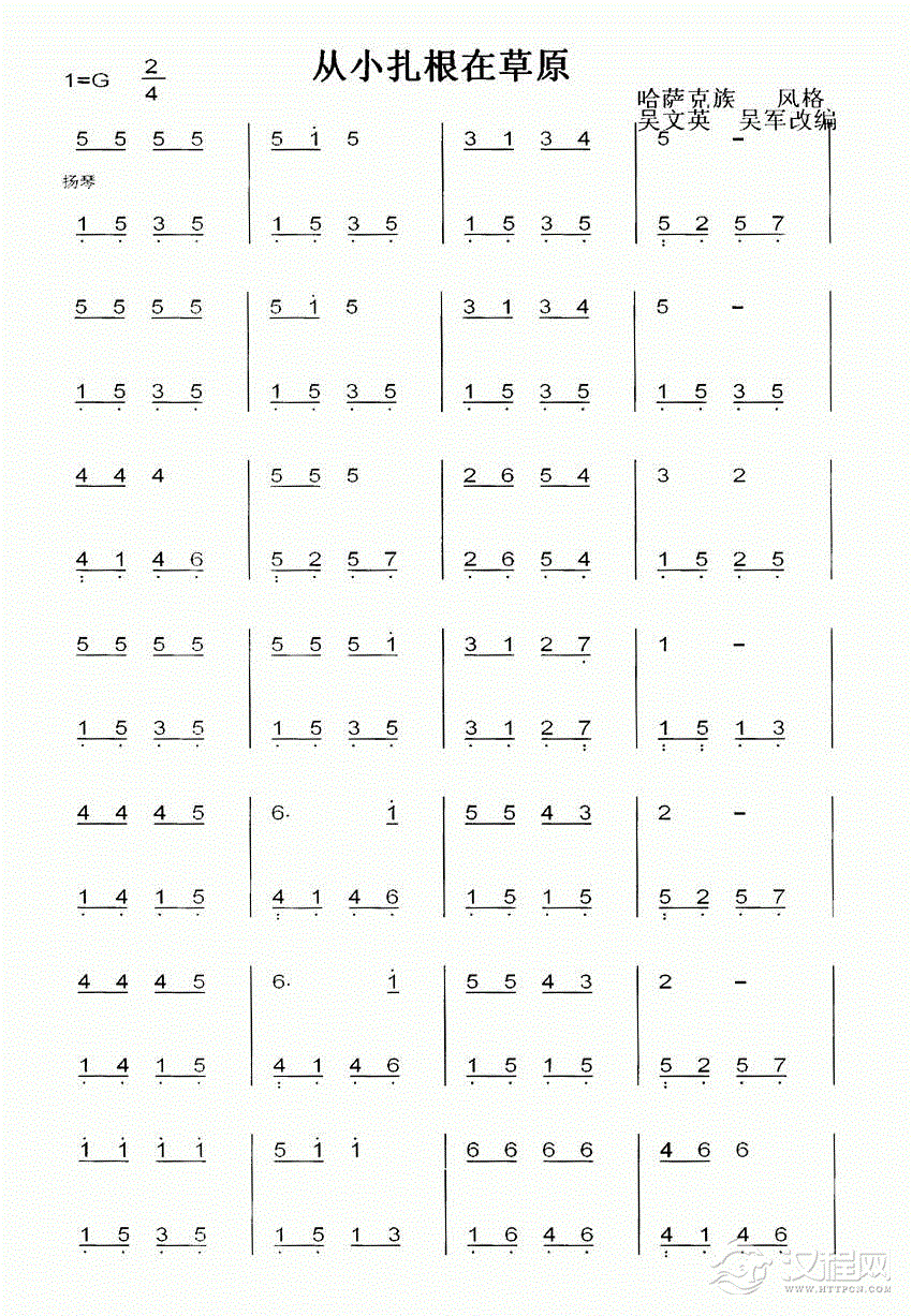 曲谱大全扬琴曲谱:边疆的泉水清又纯