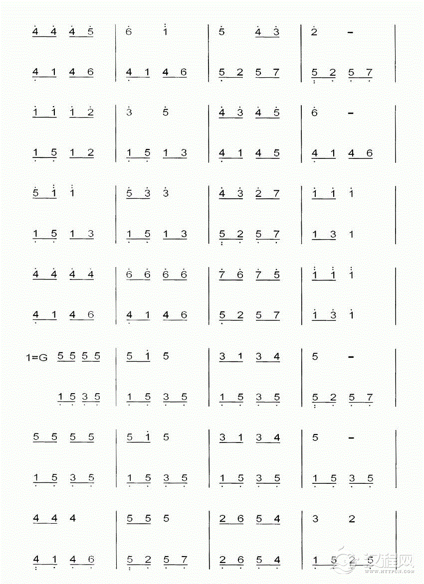 曲谱大全扬琴曲谱:五声调式交替竹练习