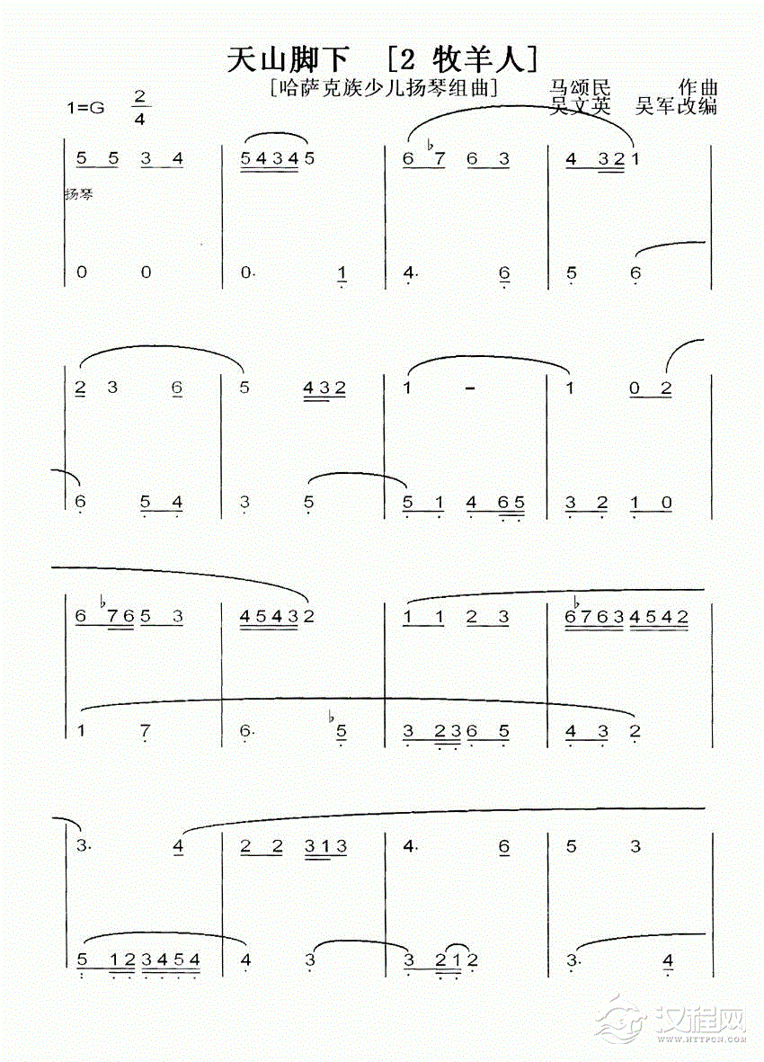 曲谱大全扬琴曲谱:天山脚下(1、冬不拉之歌)