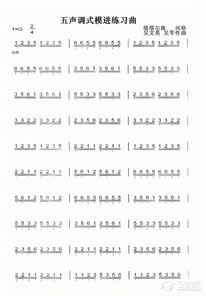 曲谱大全扬琴曲谱:左手四度双音竹练习曲四