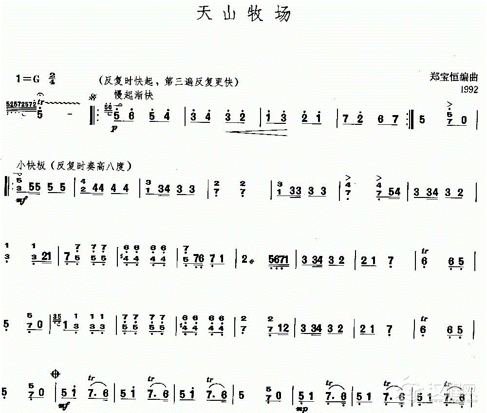 扬琴曲谱:天山牧场