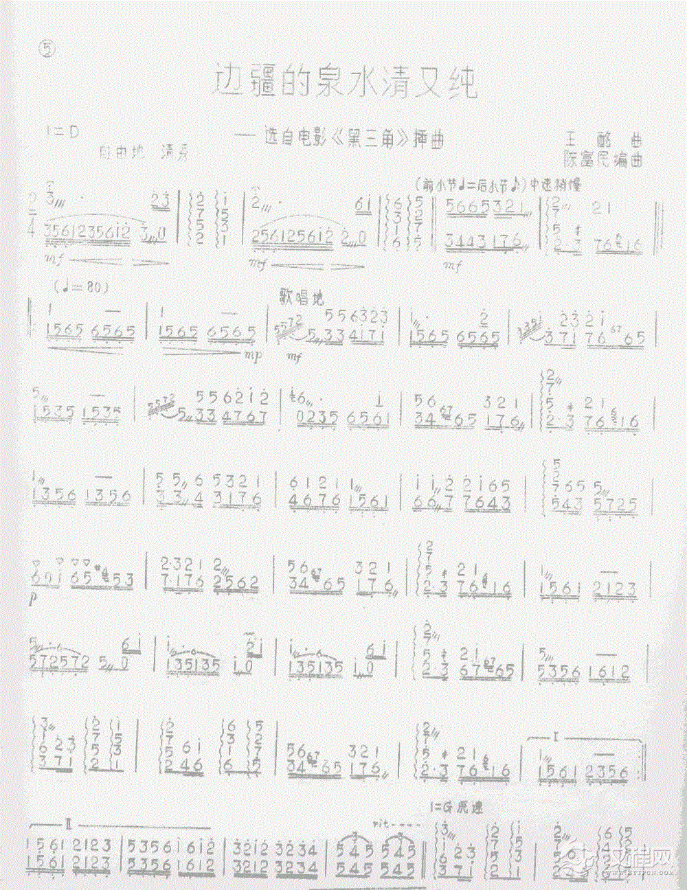 曲谱大全扬琴曲谱:清晨