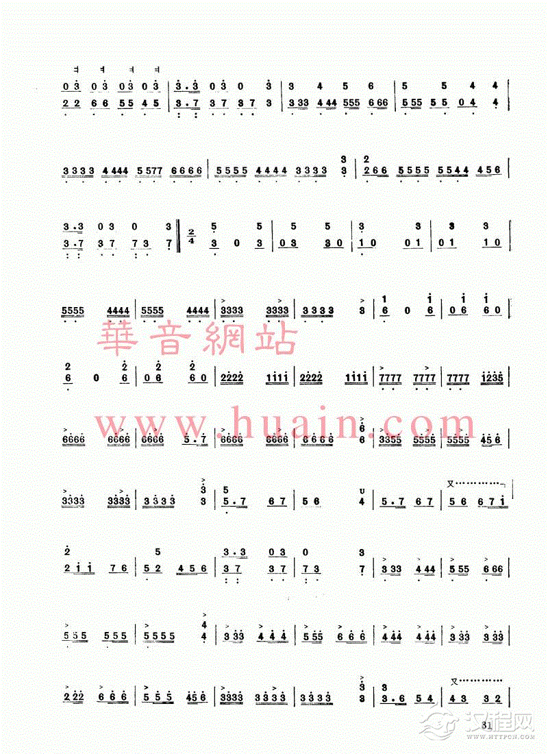曲谱大全扬琴曲谱:扬琴双音琴竹练习曲30首之二十三