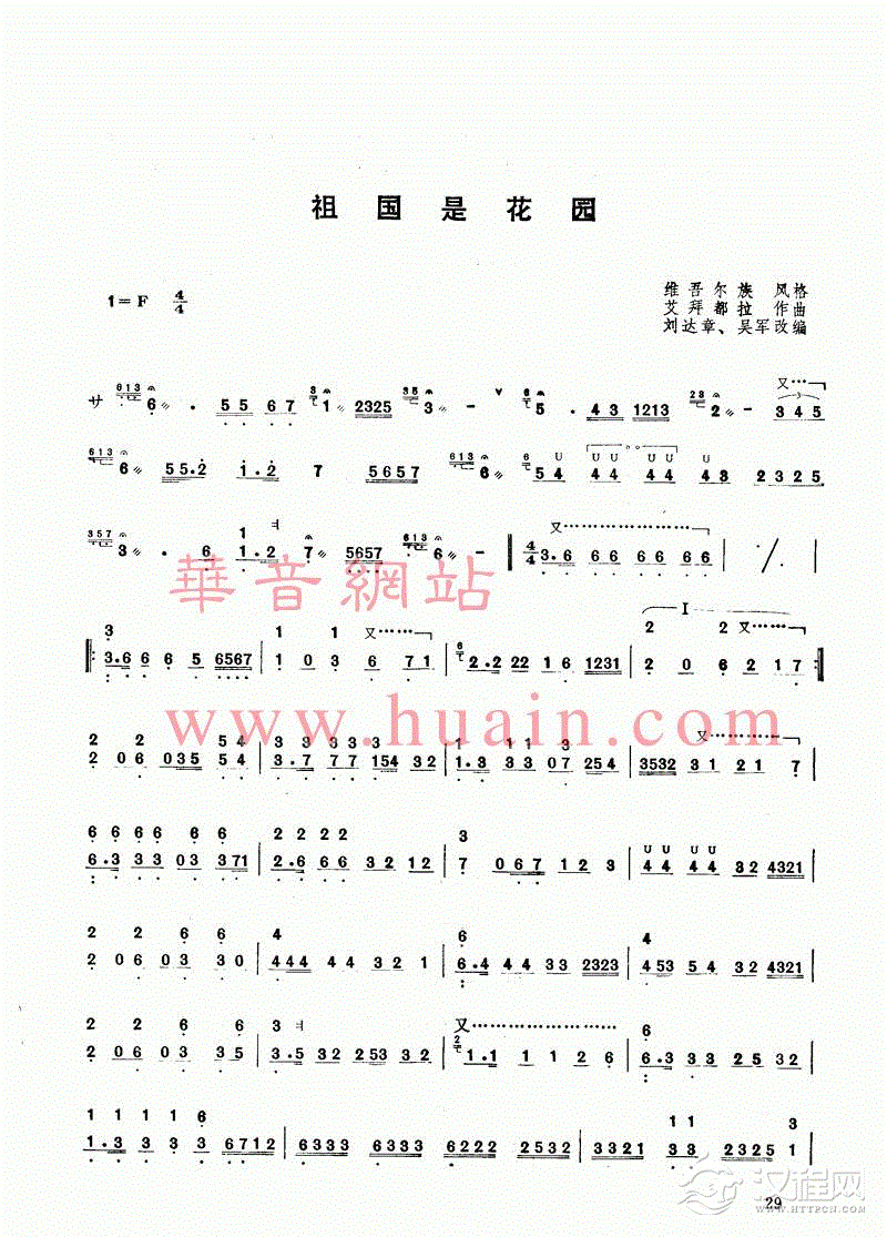 曲谱大全扬琴曲谱:木夏维热克太孜间奏曲