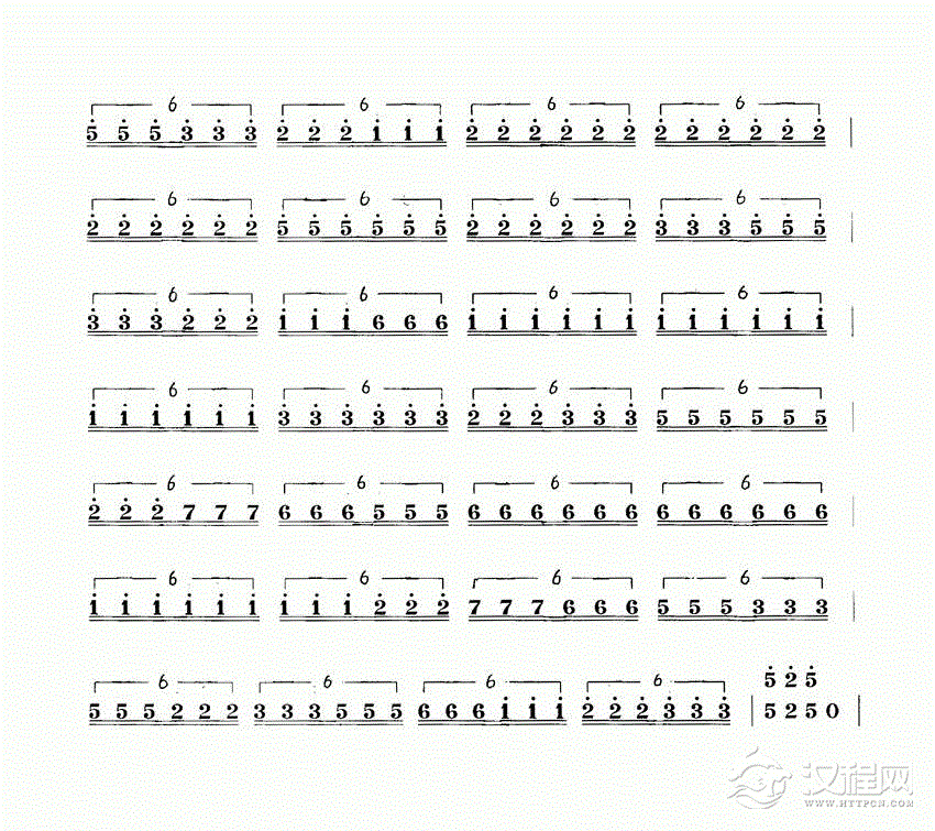 曲谱大全扬琴曲谱:扬琴双音琴竹练习曲30首之一